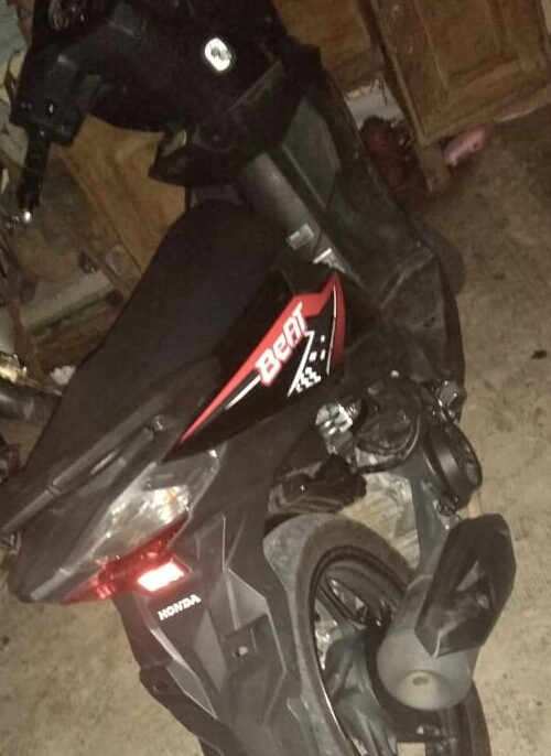 Dikarenakan panik aksinya diketahui oleh warga, Pelaku langsung melarikan diri meninggalkan motor miliknya didepan rumah warga, tak lama kemudian saat warga sudah banyak berkumpul karena mendengar teriakan maling, dan saat itu juga warga mengamankan kendaraan yang diduga milik Pelaku.