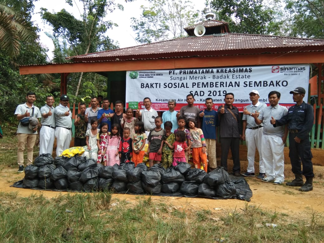 Sebagai bentuk kepedulian terhadap masyarakat, PT Primatama Kreasi Mas (Kebun SMKE SBKE) bersama PT Bahana Karya Semesta (Kebun SMTE) yang merupakan anak perusahaan PT SMART Tbk, pada Selasa (28/05/2019) menyalurkan 226 paket sembako kepada Suku Anak Dalam yang berada di Desa Jernih dan Pematang kabau, Kecamatan Air hitam, Kabupaten Sarolangun.