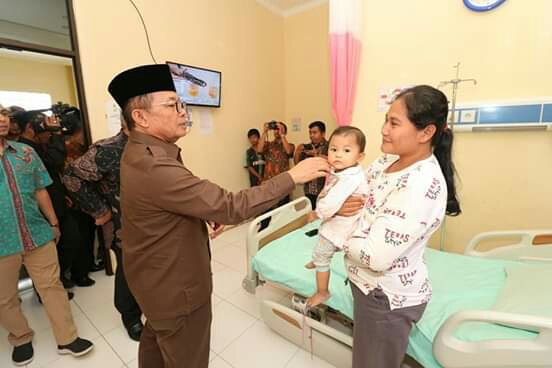 Setelah kemarin turun kelokasi kebakaran lahan, hari ini Gubernur Jambi, Dr.H.Fachrori Umar,M.Hum mengunjungi masyarakat yang sakit saluran pernafasan akibat kabut asap dari kebakaran.