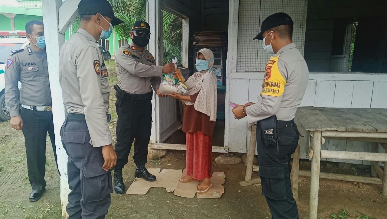 Sebagai wujud kepedulian terhadap masyarakat karena dampak virus corona atau COVID-19. Polsek Pamenang Selasa (21/04/2020) menggelar kegiatan bakti sosial yakni pembagian 30 paket sembako kepada warga diwilayah Kelurahan Pamenang, yang memang tidak bekerja karena dirumahkan, atau bagi masyarakat yang kurang mampu.