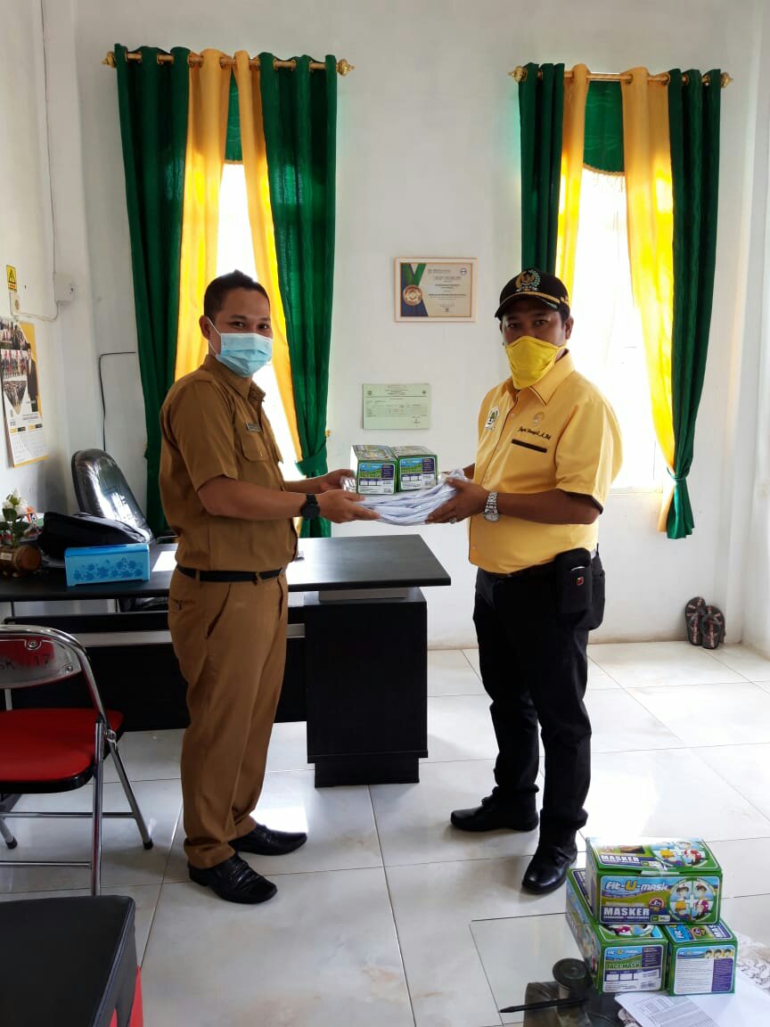 Anggota DPRD Kabupaten Sarolangun dari fraksi Golkar H. Jefri Sonnefil, A.Md serahkan langsung bantuan APD dan masker untuk Puskesmas Singkut, Senin, (27/04/2020).