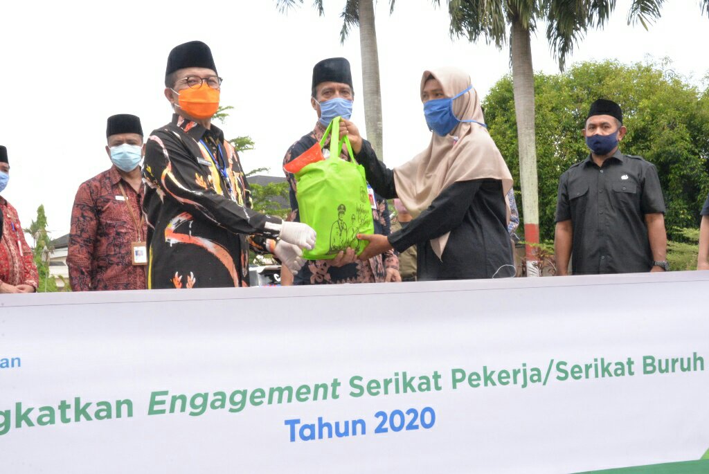 Dalam rangka Hari Buruh Internasional ini, gubernur menyerahkan bantuan sosial paket sembako bagi pekerja/buruh yang dirumahkan/PHK dan masyarakat akibat dampak Covid-19.