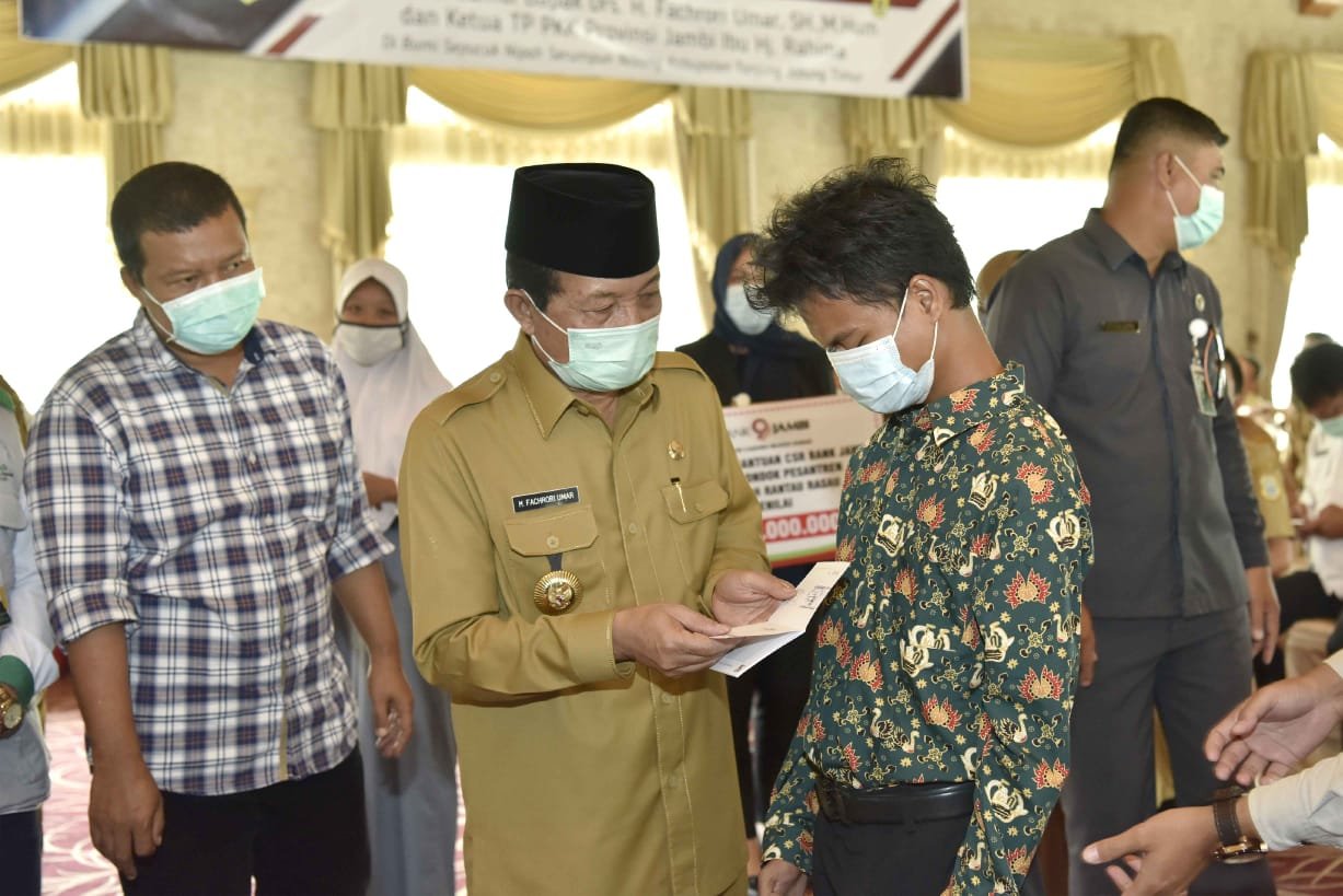 Gubernur Jambi Dr.Drs.H.Fachrori Umar,M.Hum mengemukakan, bantuan pendidikan dari Baznas dan CSR Bank Jambi untun pondok pesantren sebagai motivasi untuk terus berprestasi dalam peningkatan kualitas pembangunan pendidikan di Provinsi Jambi. Hal tersebut dikemukannya saat bersilaturahmi dan menyerahkan Bantuan dari Badan Amil Zakat Nasional (Baznas) Provinsi Jambi dan Bank 9 Jambi Melaui Corporate Social Responsibility (CSR) untuk Pondok Pesantren Al-Hidayah Rantau Rasau Kabupaten Tanjung Jabung Timur, di Aula Rumah Dinas Bupati Tanjung Jabung Timur, Senin (25/01/2021).