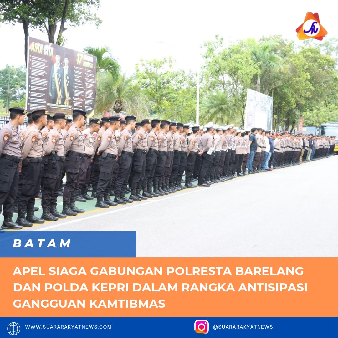 Polresta Barelang menggelar Apel Siaga Gabungan bersama personel dari Polda Kepulauan Riau dalam rangka meningkatkan kesiapsiagaan serta mengantisipasi potensi gangguan keamanan dan ketertiban masyarakat (kamtibmas) di wilayah hukum Polresta Barelang. Kegiatan apel berlangsung di lapangan Mapolresta Barelang. Senin (12/5/2025)
