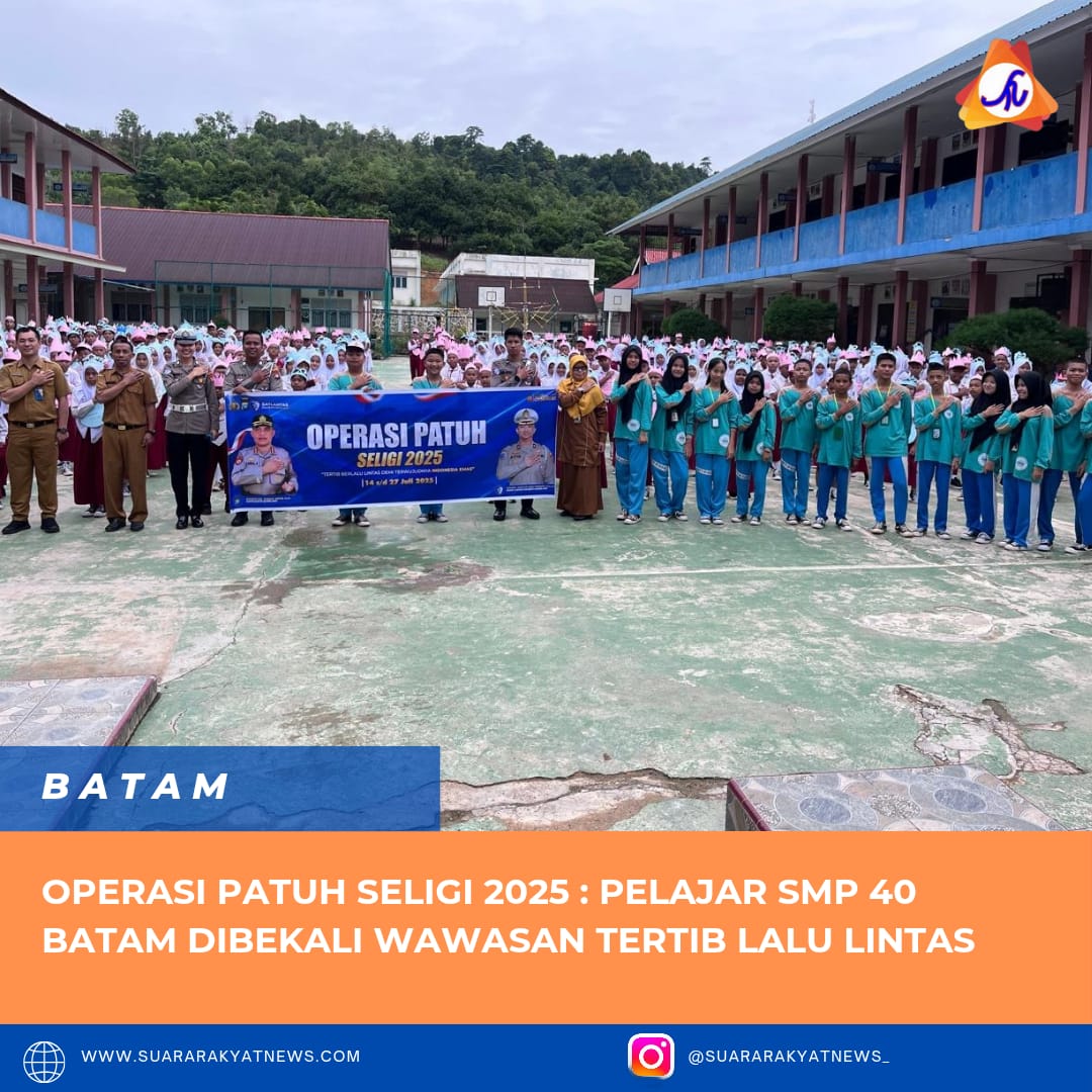 Satuan Lalu Lintas Polresta Barelang melaksanakan kegiatan “Police Go to School” sebagai bagian dari rangkaian Operasi Patuh Seligi 2025, dengan tujuan meningkatkan kesadaran berlalu lintas di kalangan pelajar. bertempat di SMP Negeri 40 Batam. Selasa pagi, (15/7/2025),