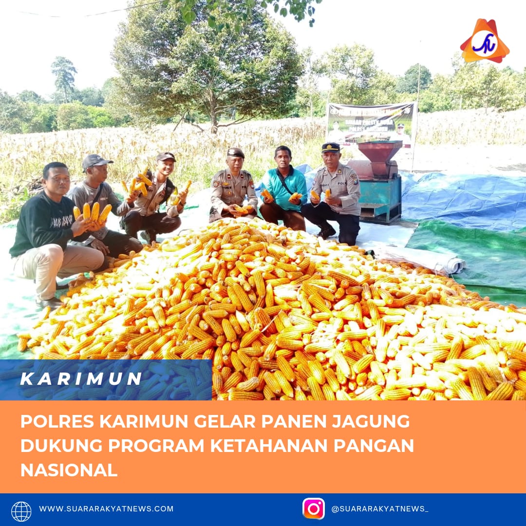 Polres Karimun melaksanakan kegiatan panen jagung dalam rangka mendukung Program Ketahanan Pangan Nasional di Kabupaten Karimun. Panen berlangsung selama dua hari, Kamis–Jumat (24–25 Juli 2025), di lahan pertanian milik Sdr. Along di Poyo Panjang, Dusun III, Desa Sawang Laut, Kecamatan Kundur Barat.
