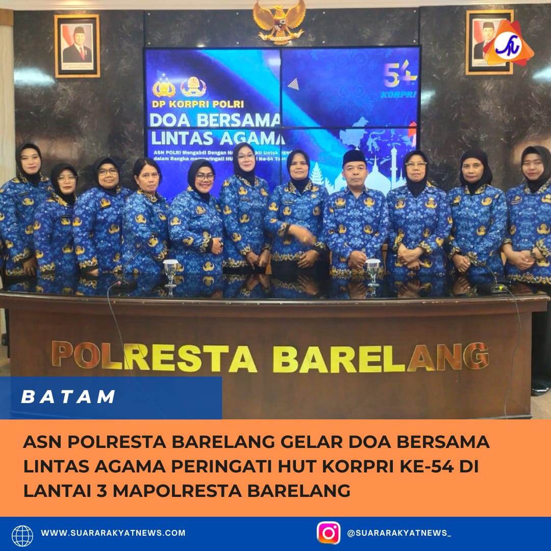 Dalam rangka memperingati Hari Ulang Tahun (HUT) Korps Pegawai Republik Indonesia (KORPRI) ke-54 Tahun 2025, Aparatur Sipil Negara (ASN) Polresta Barelang melaksanakan rangkaian kegiatan doa bersama lintas agama yang berlangsung khidmat di Lantai 3 Mapolresta Barelang. Kegiatan ini dimulai pukul 07.00 WIB dengan seluruh peserta mengenakan pakaian seragam Korpri sebagai bentuk penghormatan dan identitas ASN. Selasa (18/11/2025).